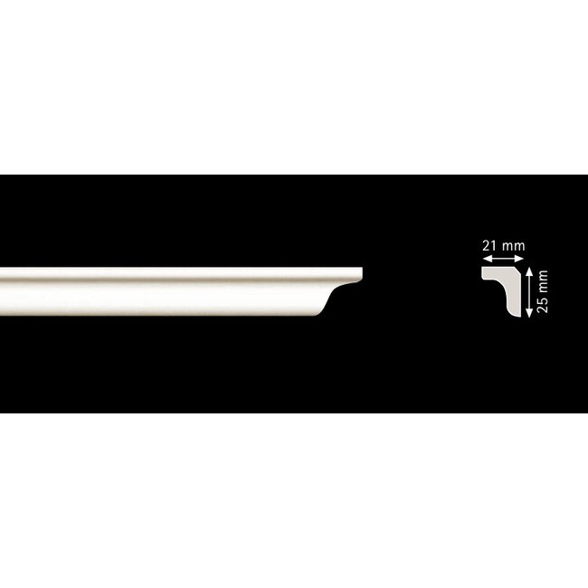 Omschrijving Plafondlijst vervaardigd uit geëxtrudeerd polystyreen voor een decoratieve afwerking tussen wand en plafond.
