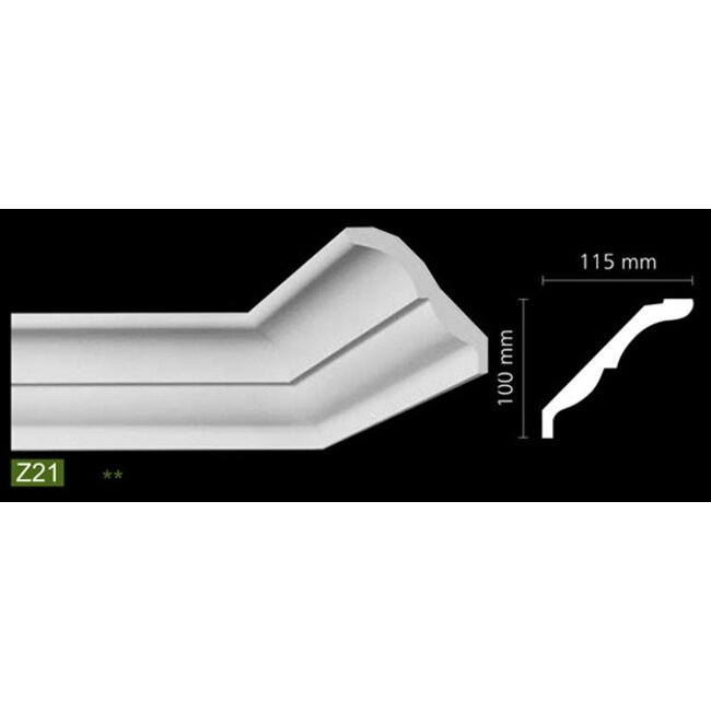 Omschrijving Plafondlijst vervaardigd uit hoogwaardig polyurethaan voor een decoratieve afwerking tussen wand en plafond. Materiaal Hoge densiteit Polyurethaanschuim (PU), rigide, gele kleur, 100% CFK-vrij, watergedragen witte primer.