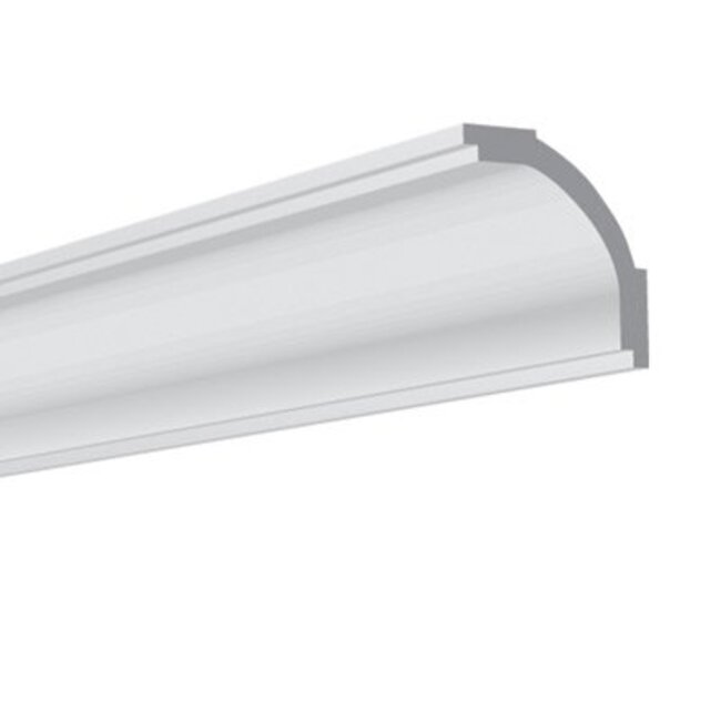 Plafondlijst vervaardigd uit geëxtrudeerd polystyreen voor een decoratieve afwerking tussen wand en plafond.
